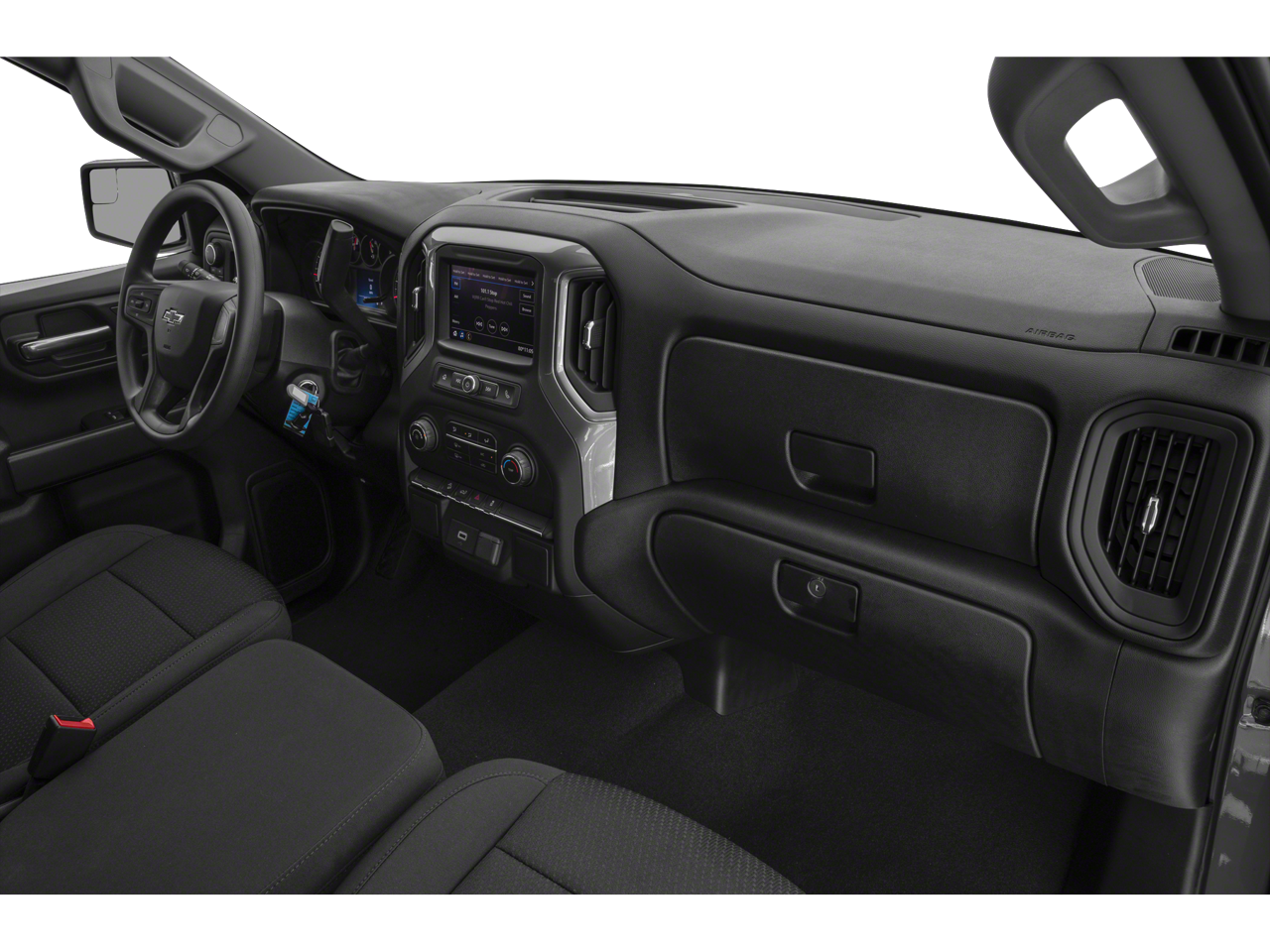 The Silverado's bold, distinctive styling stands out on the road, with a high-gloss black grille, off-road suspension, and 18-inch black painted aluminum wheels. Inside, the spacious cabin offers comfortable cloth seating and intuitive controls, including Apple CarPlay and Android Auto integration. With its impressive towing capacity, generous cargo bed, and advanced safety features, this Silverado is the perfect blend of capability and convenience.