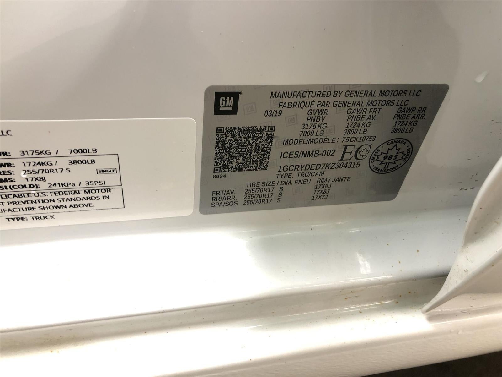 1GCRYDED7KZ304315
